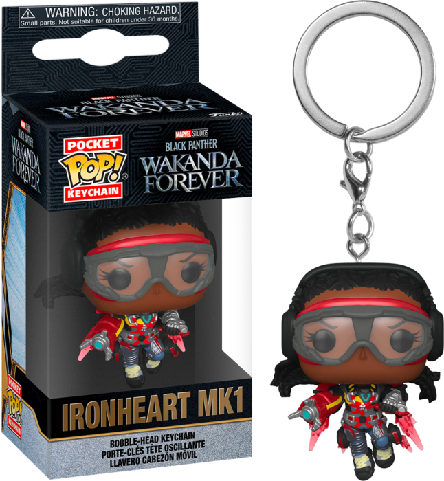 Deze pocketpop! Sleutelhanger toont Ironheart, een geniale uitvinder die haar wapenrusting draagt dat wedijvert met dat van Tony Stark.