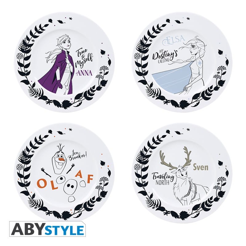 Laten we een nieuw avontuur beginnen om de oorsprong van Elsa’s krachten te ontdekken… Gelukkig kan ze rekenen op haar zus en vrienden om haar te helpen bij haar avonturen met deze fantastische Frozen 2 set van 4 borden van ABYstyle!