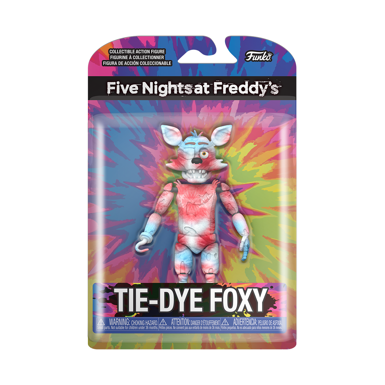 Sinds 2014 spoken die angstaanjagende animatronics van Freddy Fazbear’s Pizza door de nachtmerries van spelers over de hele wereld. Maar nu zijn je favorieten uit de hit Five Nights at Freddy’s videogameserie beschikbaar als deze ongelooflijke nieuwe “Tie Dye”-Action Figures!