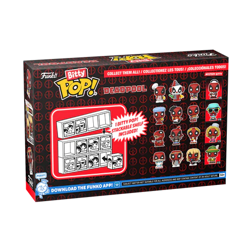 Je favoriete huurling met grote mond is gekrompen tot Bitty Pop! Breid je Deadpool collectie uit met dit assortiment van Bitty Pop! figuren met de meest iconische antiheld die er is!