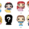 Dit 4-pack bevat Bitty Pop! Cinderella, Bitty Pop! Sneeuwwitje, Bitty Pop! Aurora, en een mysterieuze Bitty Pop! figuur. De mogelijke mysterieuze Bitty Pops! zijn de boerendochter Belle, Ariel in een jurk, of de gekroonde Elsa of Anna.