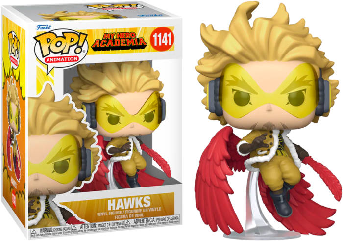 Deze pop! toont Keigo Takami, ook bekend als Hawks, wiens eigenaardigheid “Fierce Wings”, Hawks een set rode gevederde vleugels op zijn rug schenkt.
