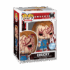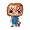 Deze Pop! toont Chucky zoals hij in de film verschijnt: bloedend, compleet met nieuwe stiksels en gewapend met een bijl waar het bloed vanaf druipt.
