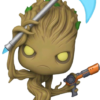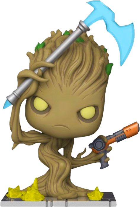 Dit geweldige stuk heeft een Deluxe Groot Pop! Vinylfiguur, zoals hij verschijnt op de iconische hoes van Groot #5, staande voor de achtergrond van de hoes.