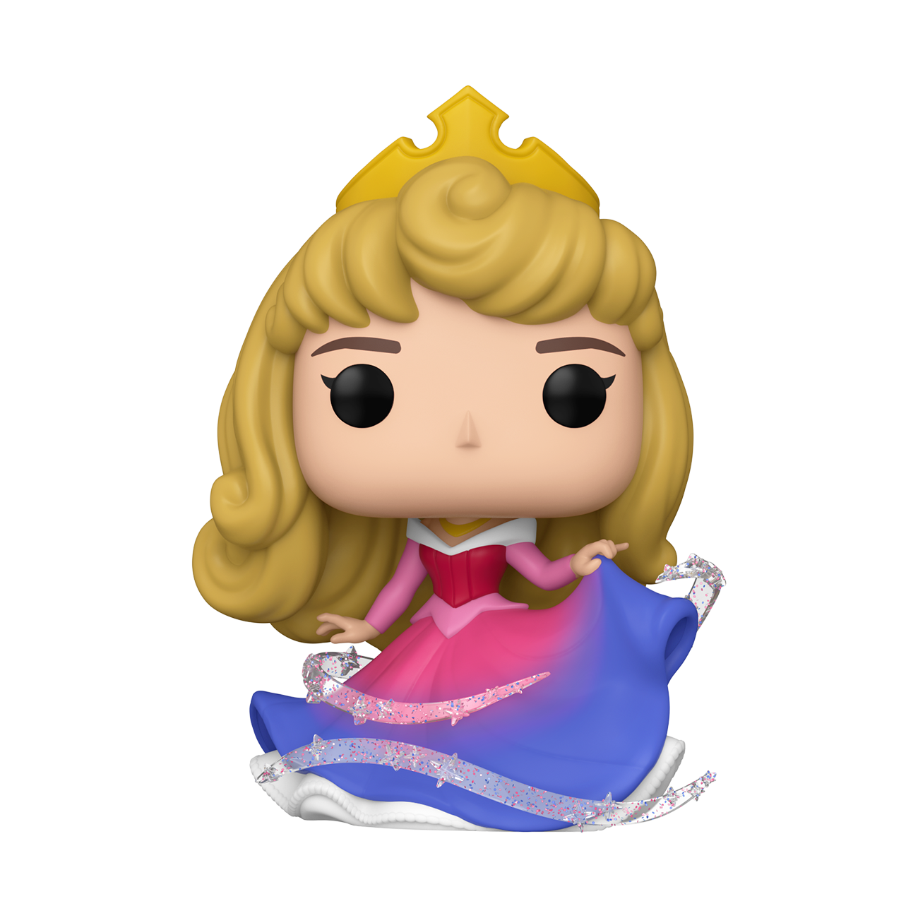 Geïnspireerd door het iconische moment waarop de goede feeën Flora, Fauna en Merryweather hun magie gebruiken om Aurora’s jurk te veranderen op het laatste bal, toont deze prachtige Pop! de tussentijdse transformatie van de jurk die van roze naar blauw gaat!