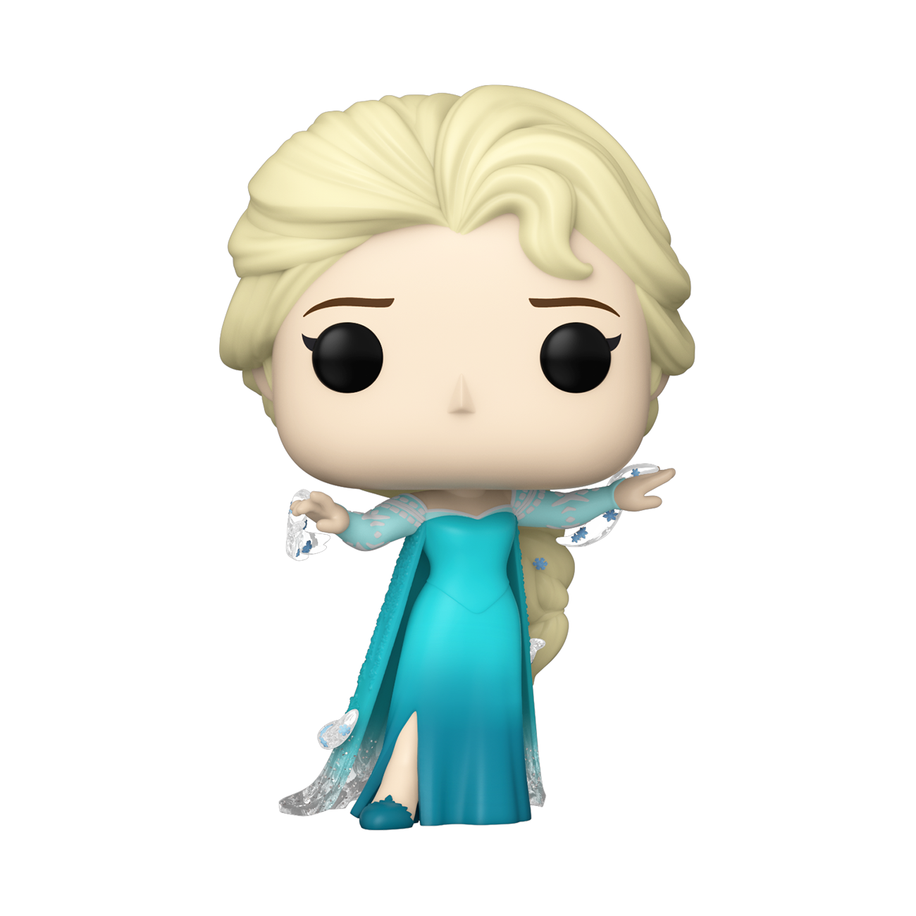 Elsa glijdt mee met sneeuwvlagen in deze elegante Disney 100th Pop! Vinyl figuur. Gesierd in haar blauwe jurk tot op de grond, dwarrelen slierten van haar ijzige kracht rond haar handen en voeten. Haar blonde haar, vastgemaakt met sneeuwvlokken, is omhoog geveegd in haar iconische vlecht. Blaas je display omver en voeg een beetje winterse kilte toe met deze prachtige Pop! van Elsa uit Frozen!