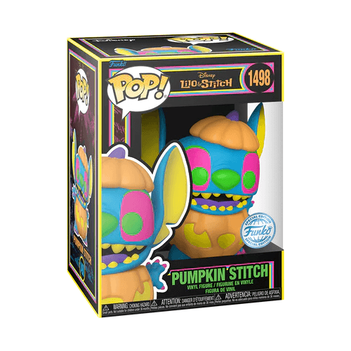 Stitch is verkleed als pompoen om deel te nemen aan je Halloweenfestiviteiten. Je Lilo & Stitch-ohana en Halloweendecoraties zouden niet compleet zijn zonder deze exclusieve Pop! Pumpkin Stitch met blacklight om mee te doen aan de trick-or-treat.