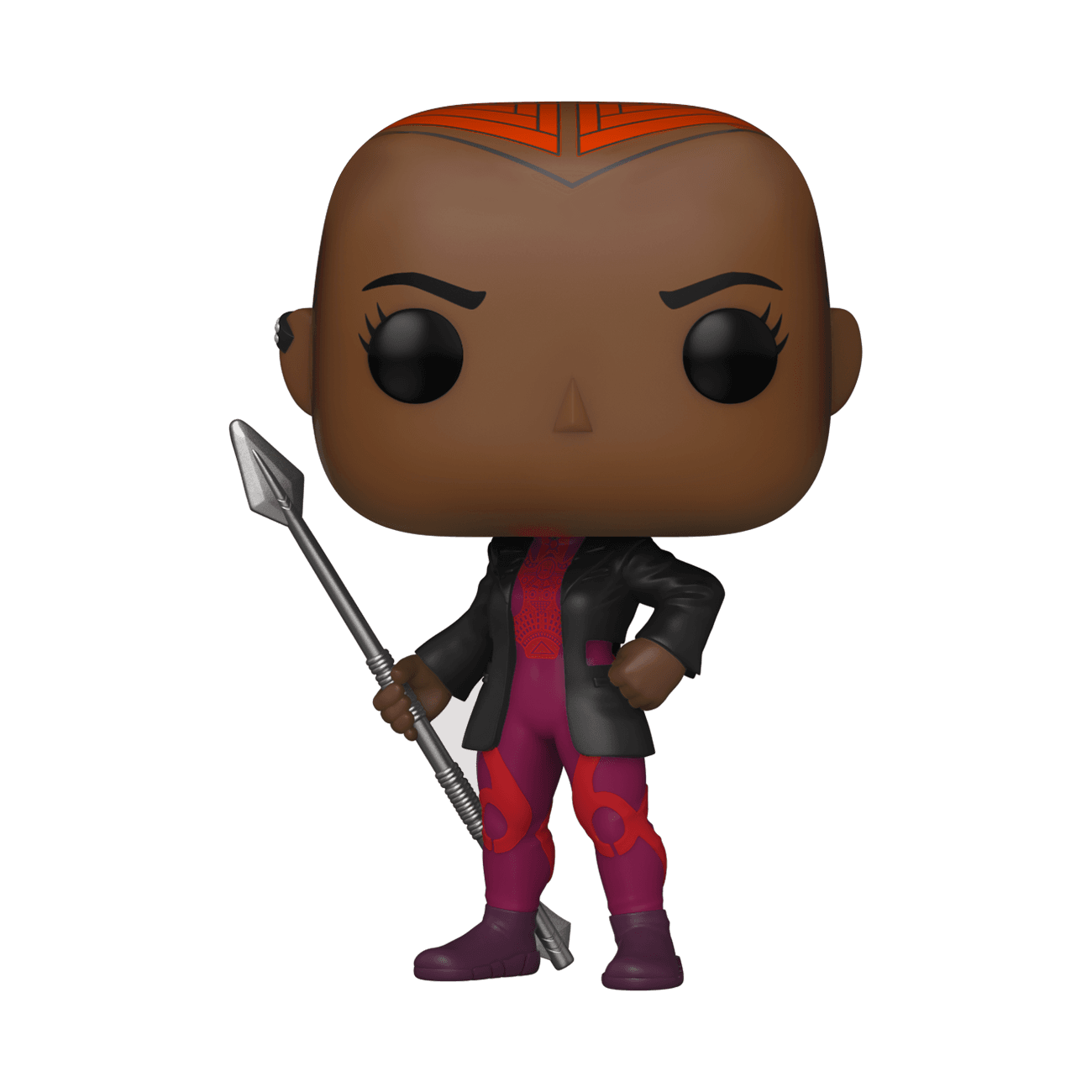 Deze pop! toont Okoye, het hoofd van de Dora Milaje, Wakanda’s volledig vrouwelijke speciale troepen en T’Challa’s lijfwachten..