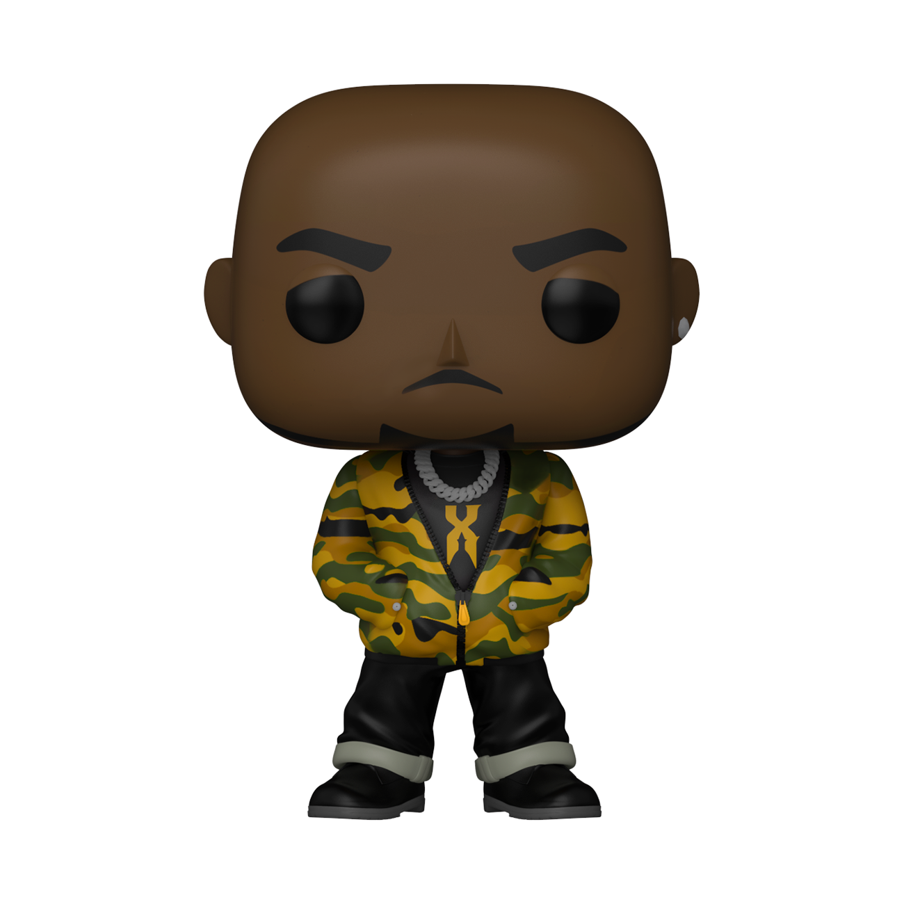 Een camouflage jasje, een wijde spijkerbroek en een zilveren ketting dragende, vier de erfenis van DMX door deze waanzinnige Pop! toe te voegen aan je jouw collectie.