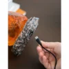 Hij is gemaakt van hars, wat doet denken aan het barnsteen waarin de prehistorische muggen bewaard bleven die zich ooit voedden met het bloed van dinosaurussen. Het LED-licht, eenmaal ingeschakeld, zorgt voor een warme sfeer waardoor je de sensatie voelt alsof je omringd bent door deze ongelooflijke uitgestorven wezens.