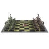 Een zeer gedetailleerd schaakspel inclusief 32 fijn gebeeldhouwde PVC dinosaurusstukken en een compleet kartonnen grafisch bord.