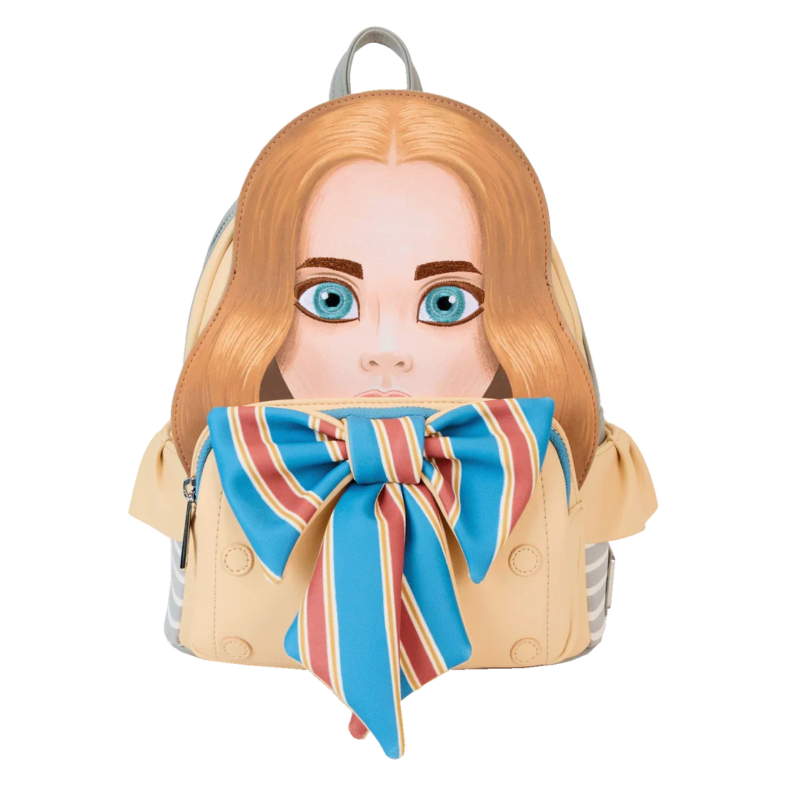 Zet je griezelig-chique dansmoves in de strijd. Onze M3GAN-rugzak is perfect om overal een geweldige look te creëren. Deze crèmekleurige rugzak neemt M3GAN’s outfit over met haar kenmerkende goud-, rood- en blauwe strik als 3D-applicatie op het voorvak. Haar geappliceerde haar en gezicht steken er realistisch bovenuit. Op de achterkant vind je het “Funki”-logo. Pak je dagelijkse benodigdheden in en ga op avontuur in angstaanjagend leuk gezelschap.