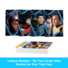 UNIEK ONTWERP OP ELKE KAART: Dit Star Trek-spel speelkaarten bevat 54 kaarten (52 speelkaarten en 2 jokers). Elke speelkaart heeft zijn eigen onderscheidende Star Trek Cast-themaontwerp en kunst. Geen twee kaarten zijn hetzelfde