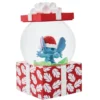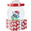 Feestelijke Hawaiiaanse decoratie, waarin Stitch verkleed als kerstman uit een kerstcadeau tevoorschijn komt.